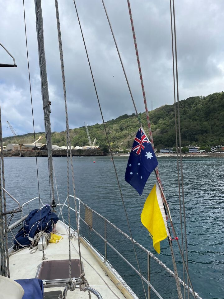 Medtem je nad Orplidom zaokrožilo manjše letalo, s katerega so me po VHF postaji obvestili, da sem v avstralskih teritorjalnih vodah in da sem kot kapitan plovila po zakonu dolžan o svojem prihodu obvestiti Australian Border Force (avstralske mejne sile – ABF). Po prihodu v pristanišče Flying Fish Cove pa bo potrebno opraviti carinske in imigracijske formalnosti.