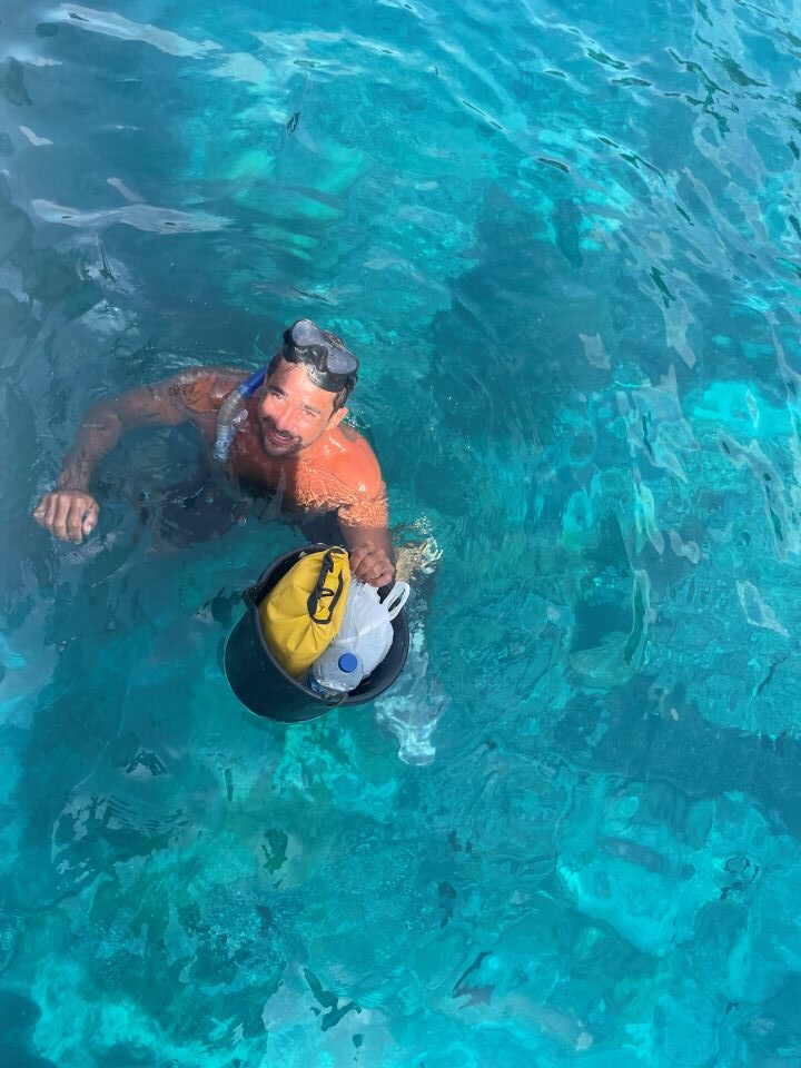 Ker se mi odkrito povedano ne ljubi montirati izvenkrmnega motorja na moj ubogi gumenjak, rajši nataknem plavutke in Mario povlečem do pomola, kjer priveže čoln, jaz pa se vrnem nazaj na barko. Ker sem pred meseci izgubil eno veslo, je namreč veslanje s samo enim veslom precej neprijetno. Na srečo je muring precej blizu obale in veter stalno piha od pomola proti barki, tako da je pot nazaj na barko precej lažja.